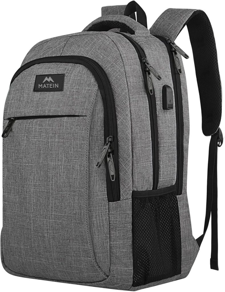 Travel Laptop Backpack, Business Anti Theft Slim Sturdy Laptops Backpack with USB Charging Port, Water Resistant College School Computer Bag Gift for Men & Women Fits 15.6 Inch Notebook, Grey